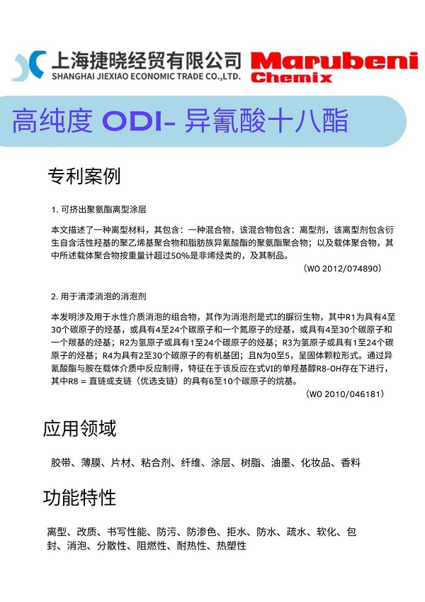 與丸紅Chemix合作推廣日本保土谷生產(chǎn)的高純度ODI——異氰酸十八酯